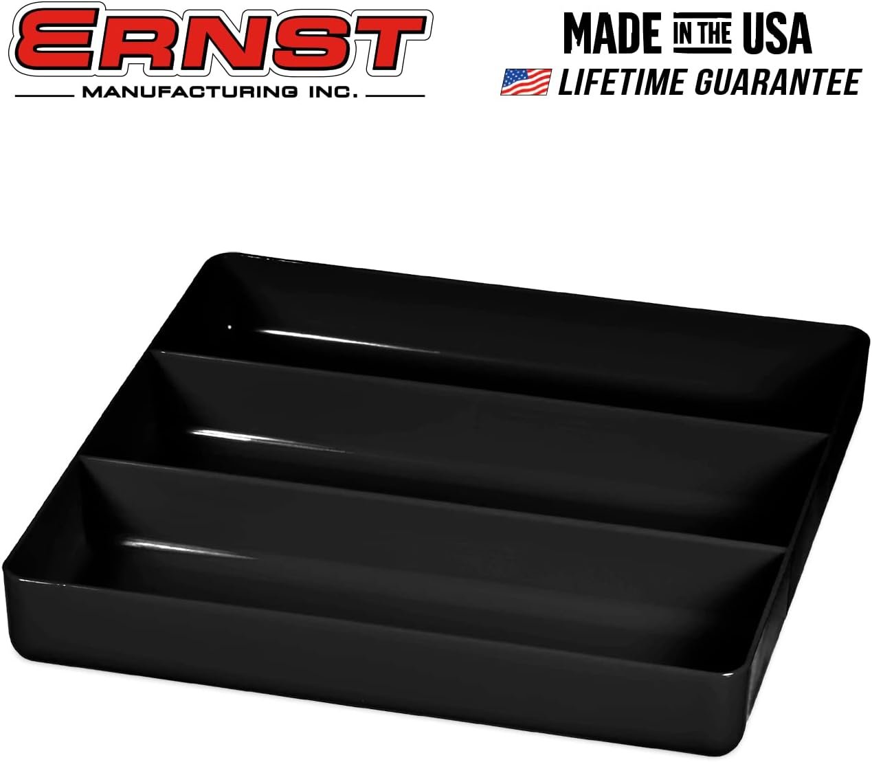 When compared with the Craftsman 3-Section Drawer Organizer and the DeWalt Professional Hardware Sorting Tray, Ernst Manufacturing’s model stands out due to its superior impact resistance and stackable tray design. The price is in line with similar products, but with the added benefit of fuel/solvent resistance and US manufacturing quality.